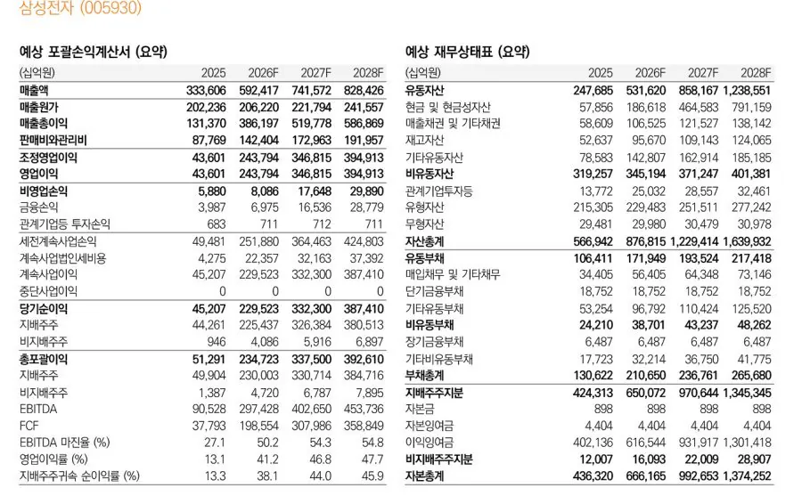 2028년 매출액 828조원 영업이익 395조원 순이익 387조원 전망