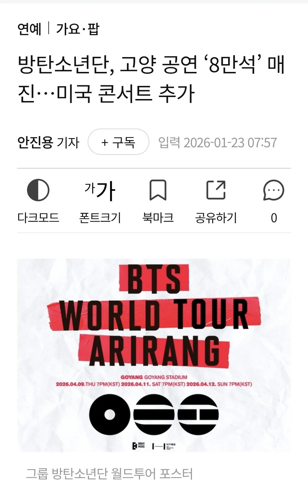 TMI Bts 고양 콘서트 관객수ㄷㄷ 정리