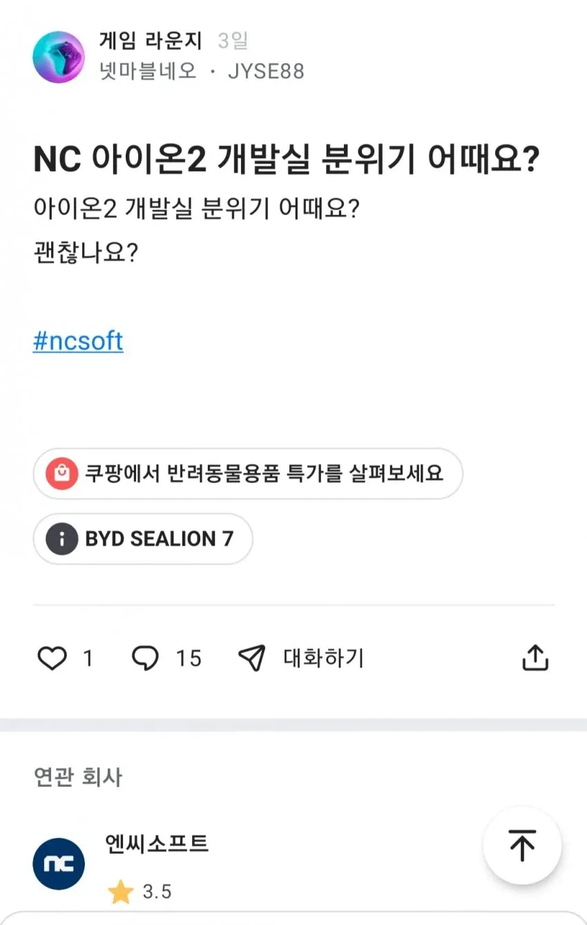 이슈의 요즘 NC소프트 내부 근황.jpg 댓글 필수